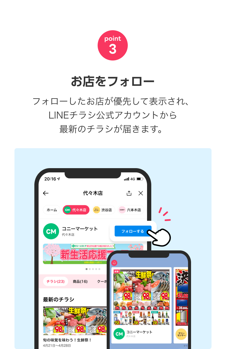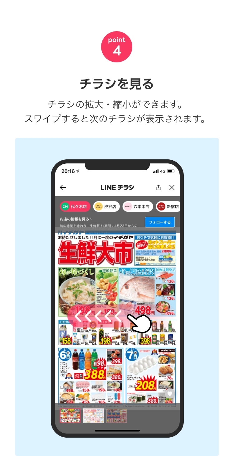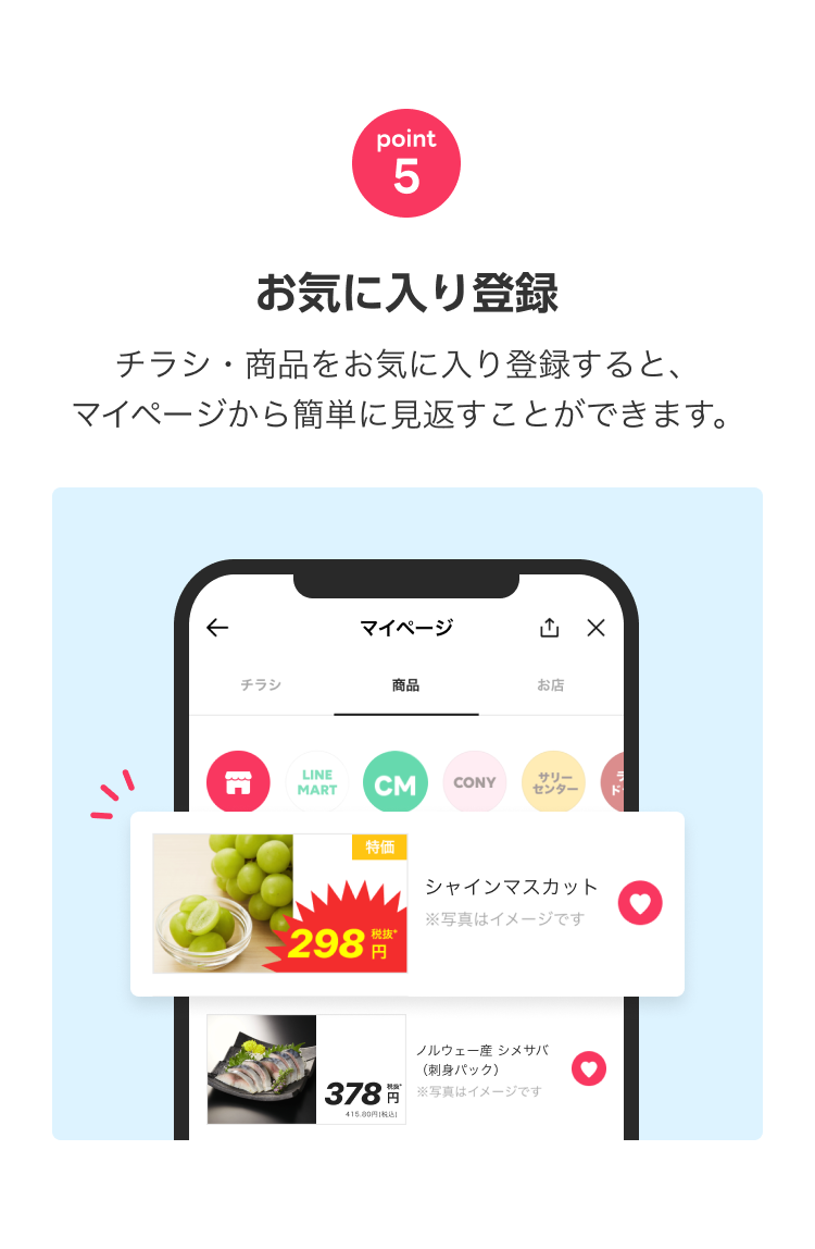 LINEチラシの掲載価格はすべて税抜表示となっております。軽減税率対象(消費税8%)の商品は 税抜 の右側に*マークを表記しています。ただし、店内飲食される場合、税率が異なる場合がございますので、詳しくは掲載店舗にお問い合わせください。